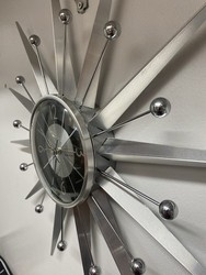 Wall clock in aluminum. Of the brand george nelson but also a frame material 'aluminum' and also an originalreproduction established as 'licensed reproduction' just as a style qualified as mid century modern