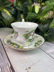 Tea cup and saucer set in bone china. Of the brand er golden crown in addition to a theme floral; It is of the type summer but also it is a vintage; In particular: china, cup ¬