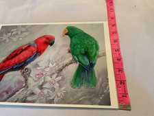 Postcard colorful pair. This printed lithograph; The theme animals; With the following characteristics chrome; A size of continental 6 x 4 in but also it is of the type all as well as a subject colorful parrots ¬