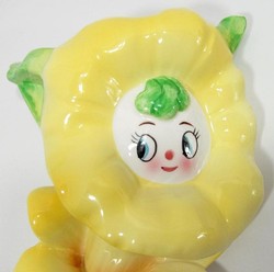Wall pocket yellow | A material -> ¨ceramic¨ | an era qualified as mid 20th century 19411969 | a subject : flowers | this product are a vintage | in particular: trumpet, yellow ¬