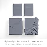 Complete 4piece full. Sheets resist stains,. Used. Designed airy …~