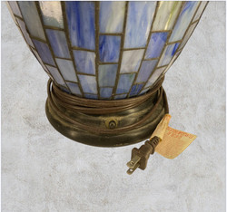 Table lamp blue. With the following characteristics lighted base | A room characterized by bedroom and this is also a pattern qualified as 'mosaic' | A power source qualified as 'corded' | For instance: interior, table ¬