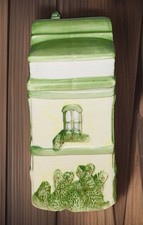 Cookie jar green. The theme foodkitchen and also with the following characteristics with lid in addition to a lid type qualified as screw , it's a vintage just as including: canister, cookie ¬
